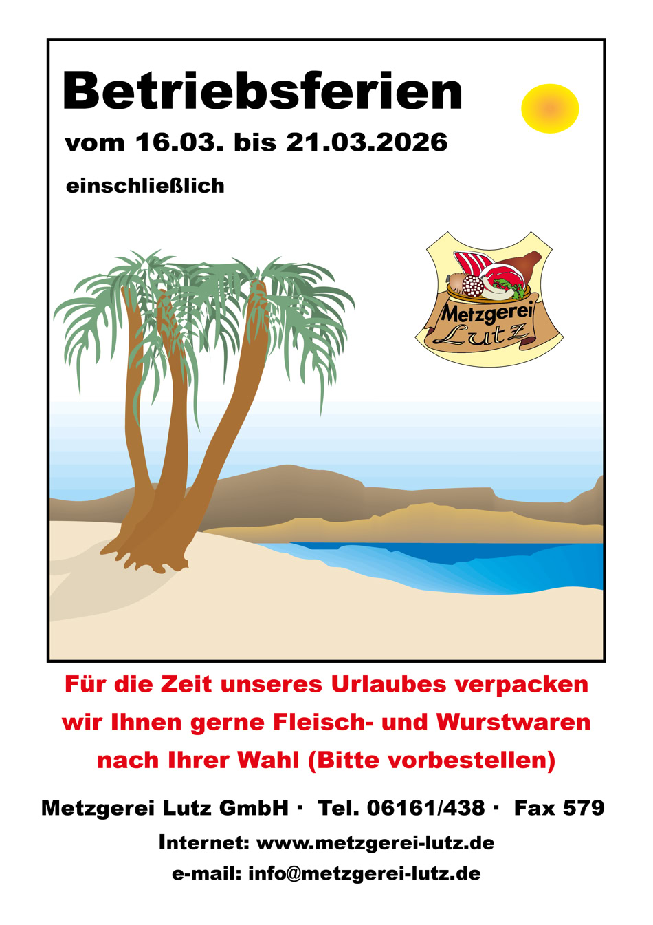 Metzgerei Lutz GmbH - Heidelberger Str. 1 -  64395 Brensbach - Telefon: 06161-438  Fax: 06161-579 - email: verkauf@metzgerei-lutz.de - info@metzgerei-lutz.de