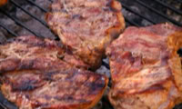 Kammsteaks, Rückensteaks, Bauchscheiben, Spareribs,  Rindersteaks, Putensteaks, Hähnchensteaks, in verschiedenen Marinaden